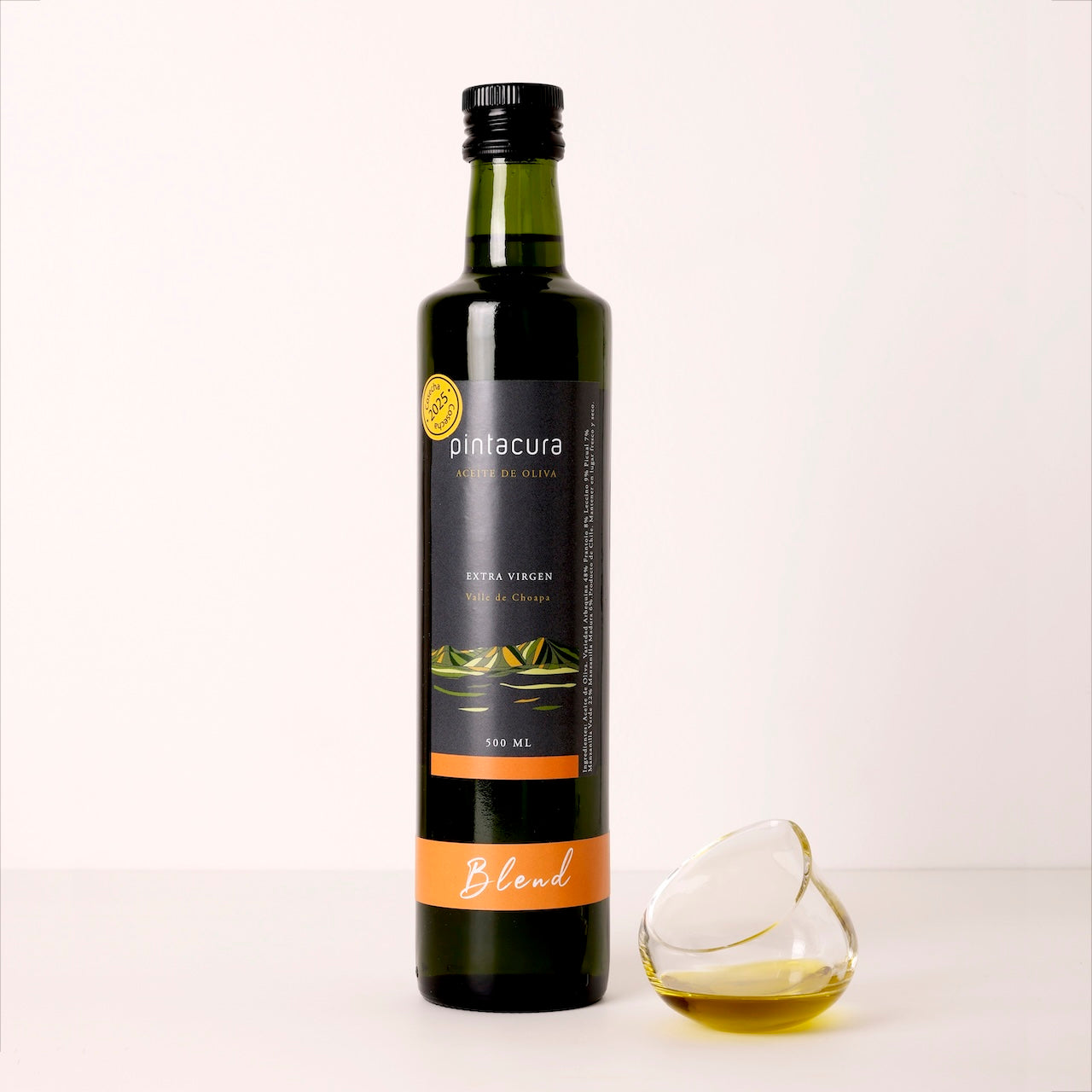 Pintacura, blend: La gran revelación del año pasado esta empresa y su propuesta de calidad. Este blend es una mezcla de 8 variedades y su complejidad lo revela. Armonía y balance, un aceite delicioso para disfrutar con lo que se te ocurra, especialmente en ensaladas y platos fríos.